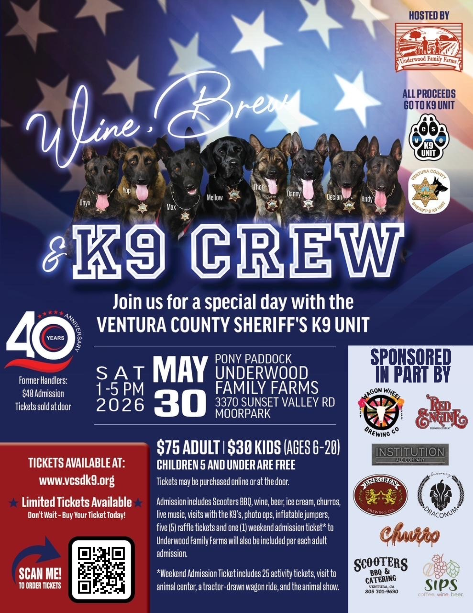 May 30, 2026- Wine, Brews, & K9 Crews: Underwood Family Farms